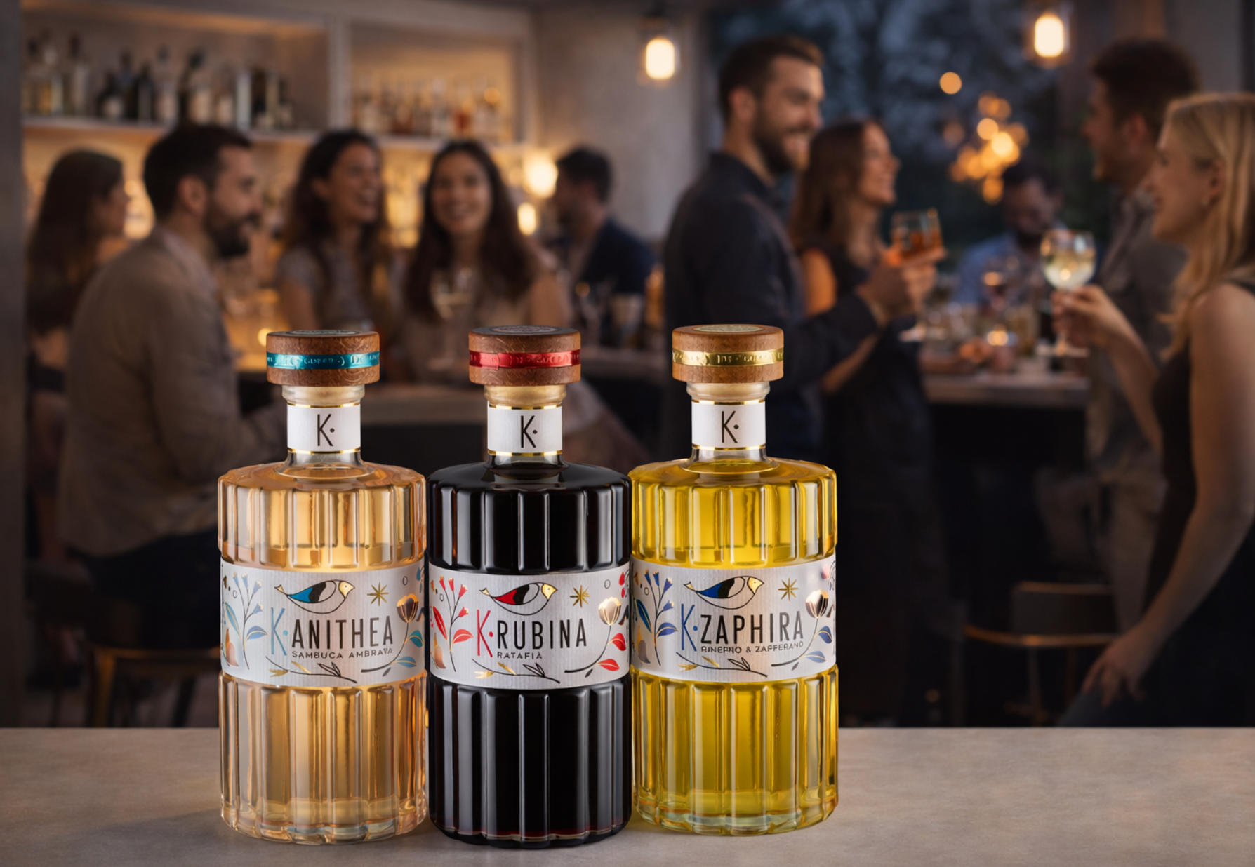 Anithea, Rubina e Zaphira sono nomi scelti per evocare, più che descrivere: rimandi aulici, quasi mitologici, che si intrecciano con l’anima delle materie prime da cui nascono. La sambuca ambrata, la ratafià e il ginepro allo zafferano trovano così una dimensione narrativa, dove il gusto diventa racconto e il prodotto assume un carattere identitario forte e riconoscibile.