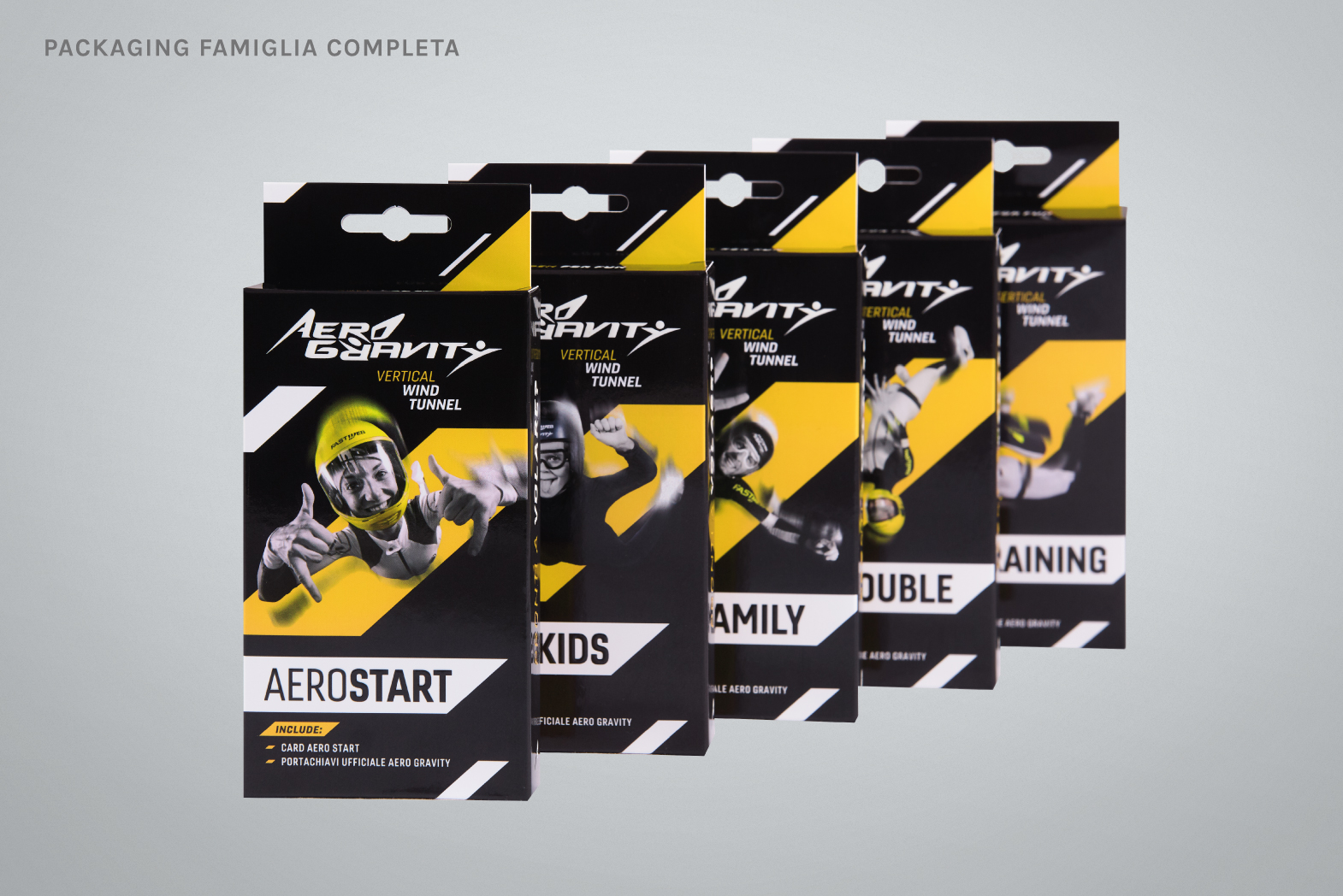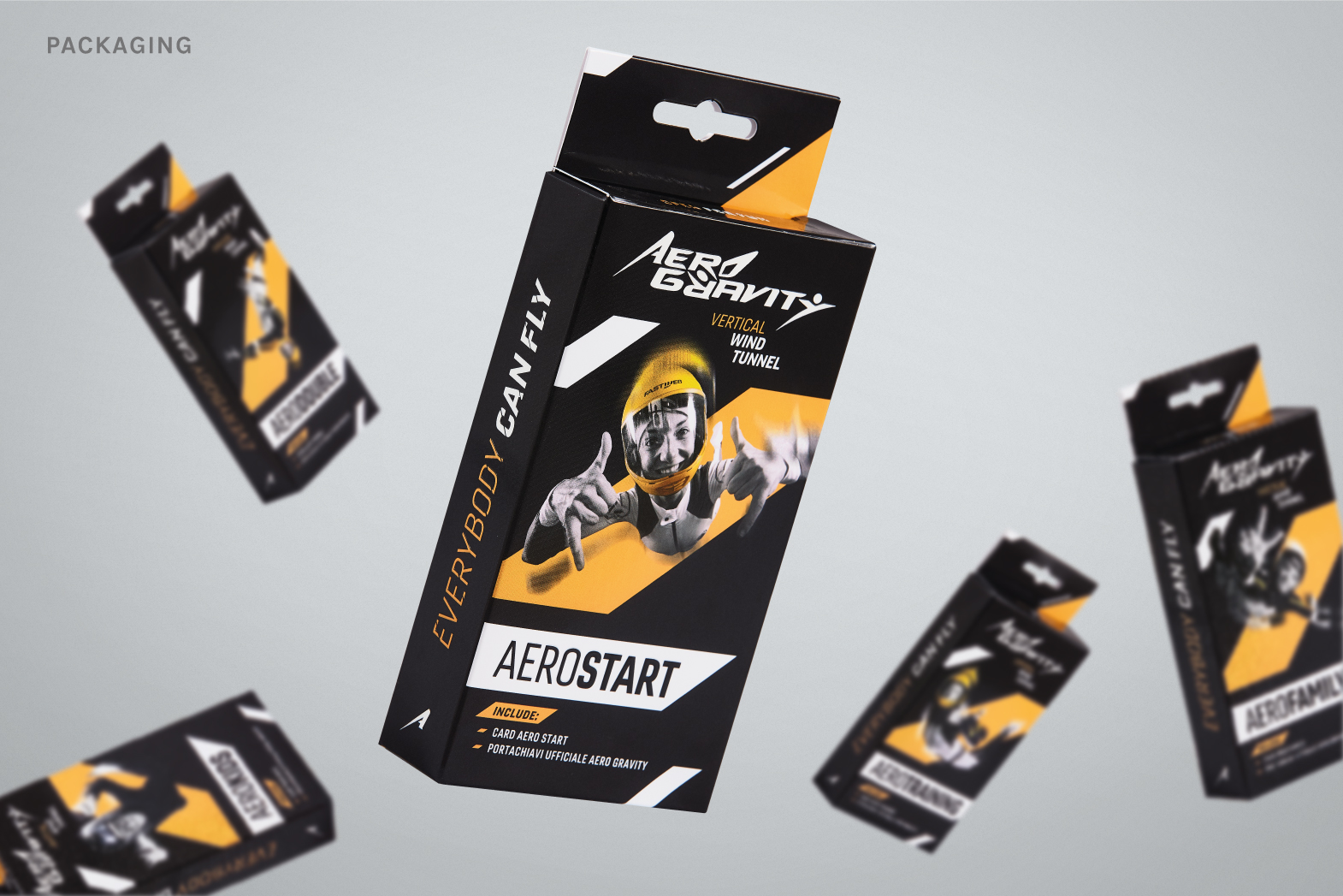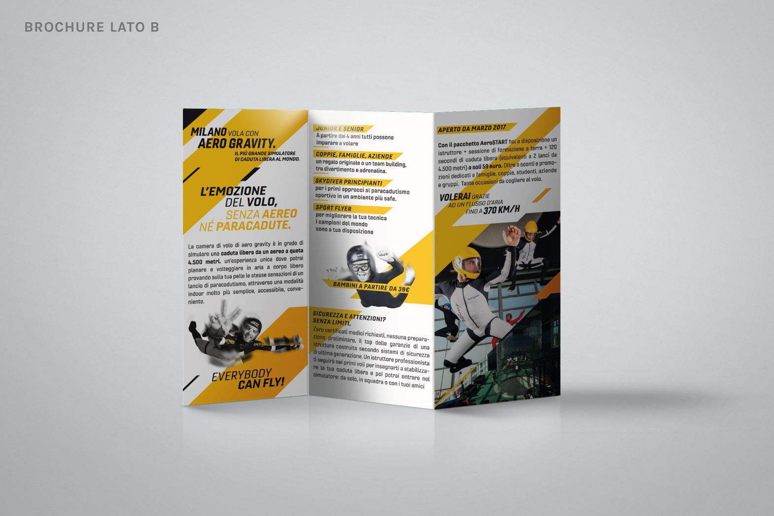 Un progetto di ampio respiro che mi ha dato la possibilità di creare tutti gli elementi atti a vestire Aerogravity, il simulatore di caduta libera + grande del mondo.