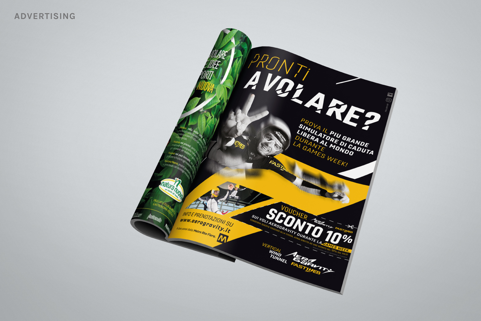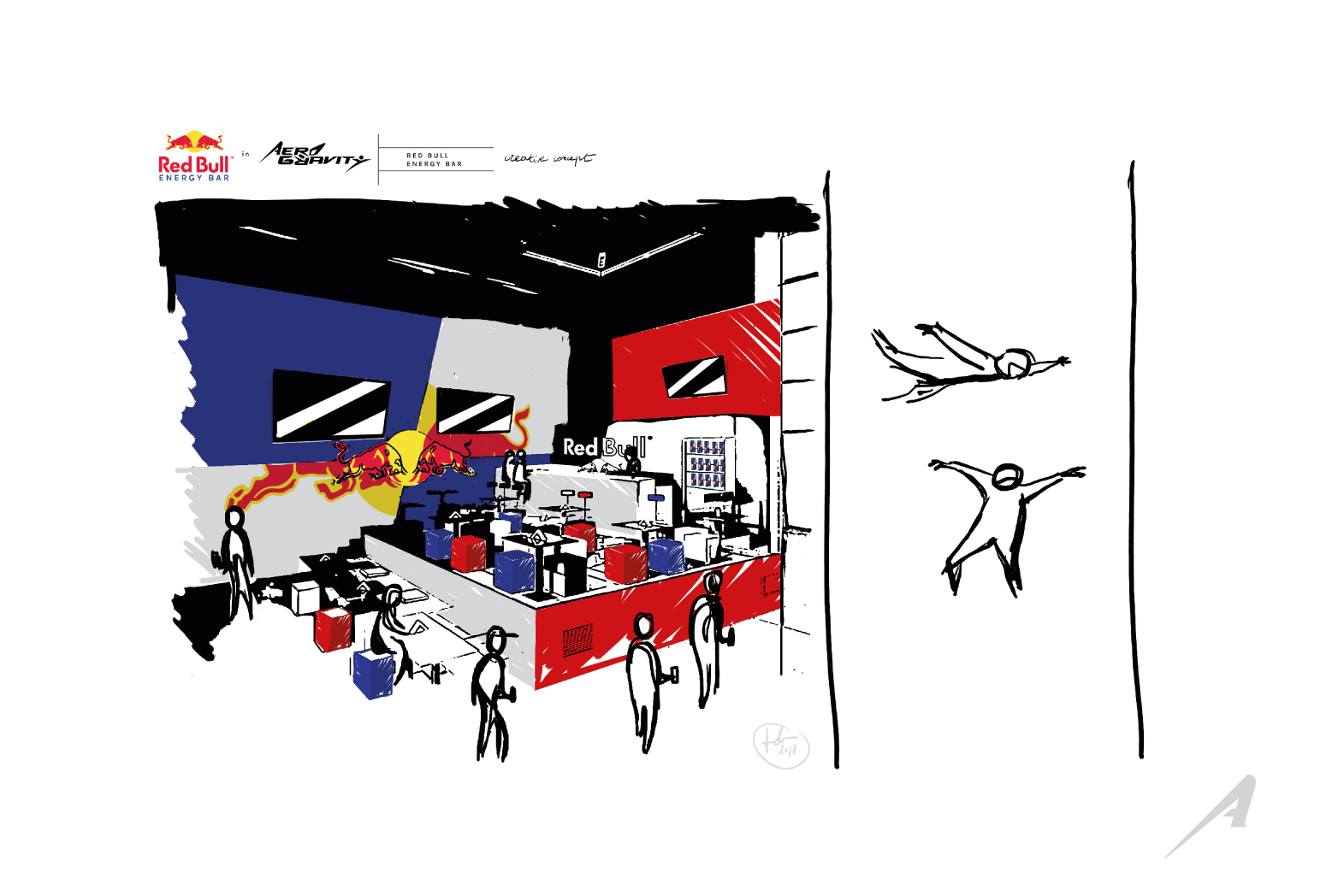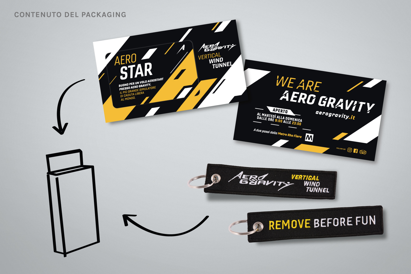 Un progetto di ampio respiro che mi ha dato la possibilità di creare tutti gli elementi atti a vestire Aerogravity, il simulatore di caduta libera + grande del mondo.